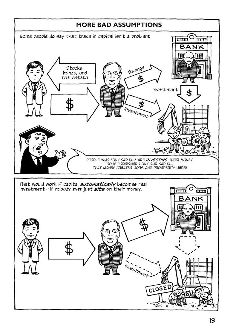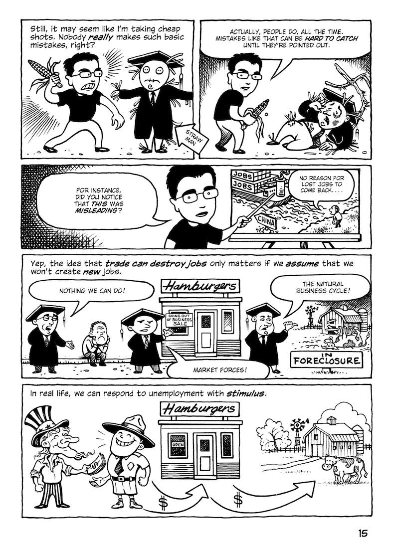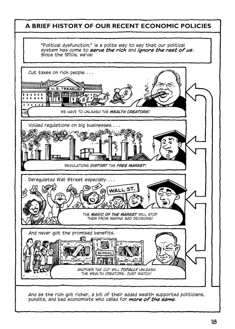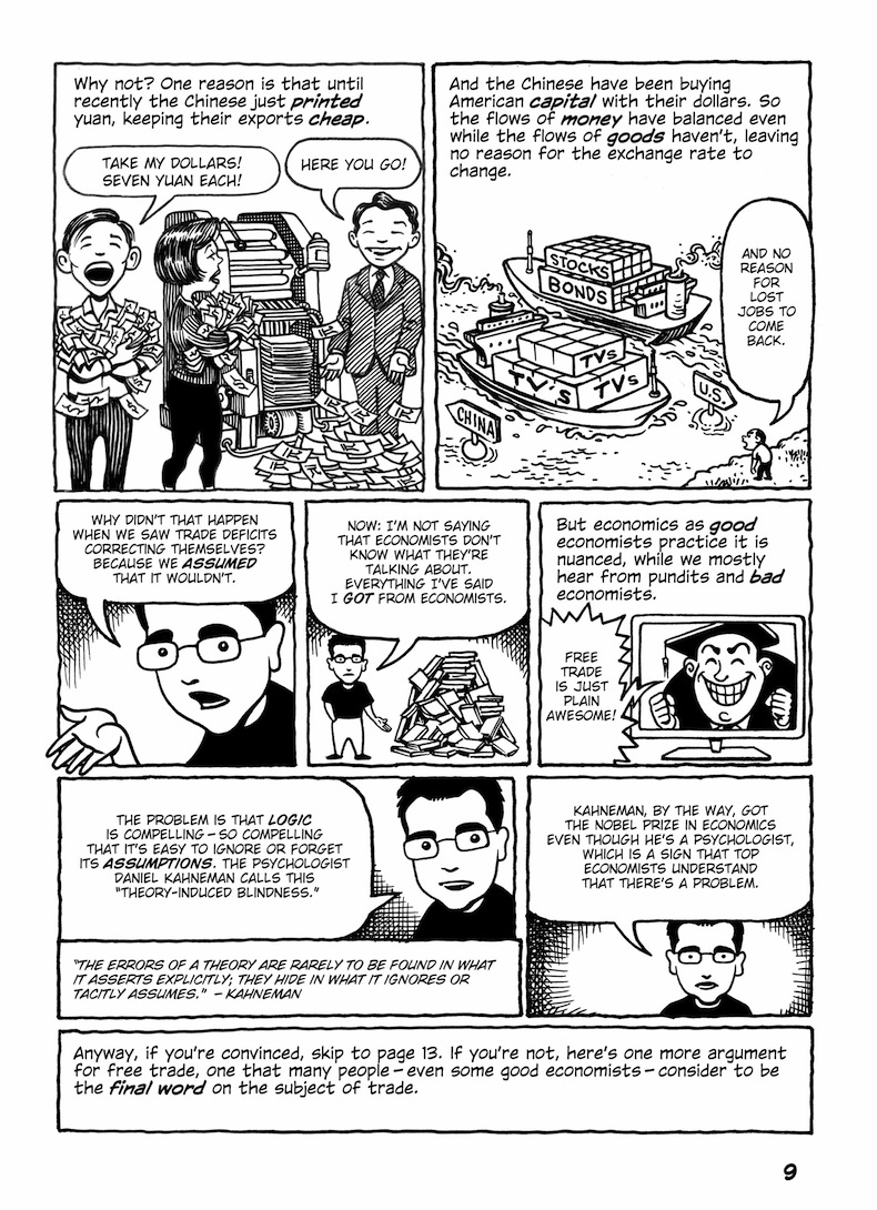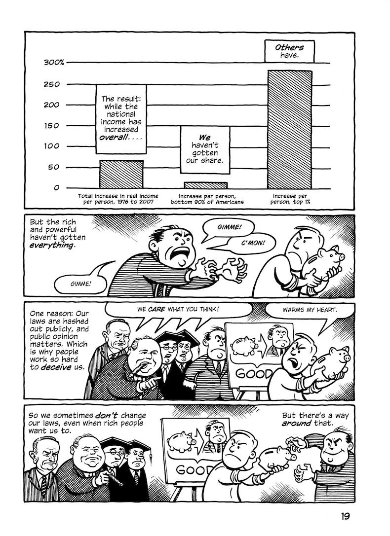 This comic about the Trans-Pacific Partnership was originally published in early 2014, when the full text of the agreement hadn’t been released; the final text was more or less what was expected (slightly better in some parts, worse in others). But in any case, the TPP is dead.